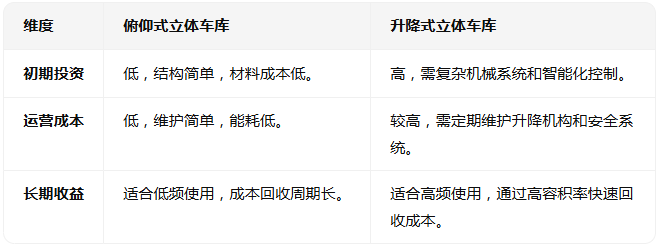 俯仰式立體車庫與升降式立體車庫的核心區別在于運動方式、結構特點、適用場景及成本效益,具體分析如下: